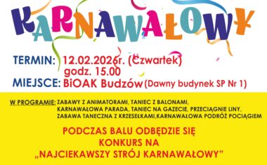 Biblioteka i Ośrodek Animacji Kultury Gminy Budzów zaprasza na Bal karnawałowy. Bal odbędzie się 12.02.2025r. (czwartek) o godz. 15.00 w BiOAK Budzów. Podczas balu odbędzie się konkurs na Najciekawszy strój karnawałowy. Wstęp wolny. Serdecznie zapraszamy!