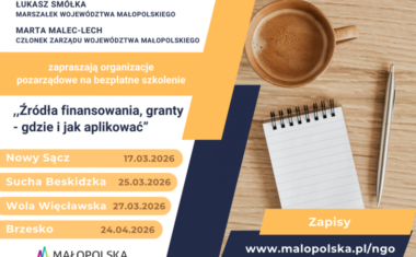 Przedstawiciele organizacji pozarządowych z Małopolski dowiedzą się bezpłatnie jak pozyskać pieniądze na zadania publiczne. Sprawdź gdzie i kiedy będzie najbliższe szkolenie.