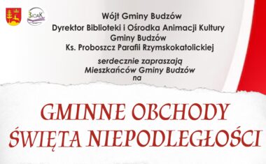 Wójt Gminy Budzów, Dyrektor Biblioteki i Ośrodka Animacji Kultury Gminy Budzów, Ks. Proboszcz Parafii Rzymskokatolickiej serdecznie zapraszają Mieszkańców Gminy Budzów na Gminne Obchody Niepodległości. 11 listopada 2025r. (wtorek).