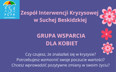 Powiatowe Centrum Pomocy Rodzinie – Zespół Interwencji Kryzysowej w Suchej Beskidzkiej organizuje Grupę Wsparcia dla Kobiet. Zachęcamy do wzięcia udziału w spotkaniach.