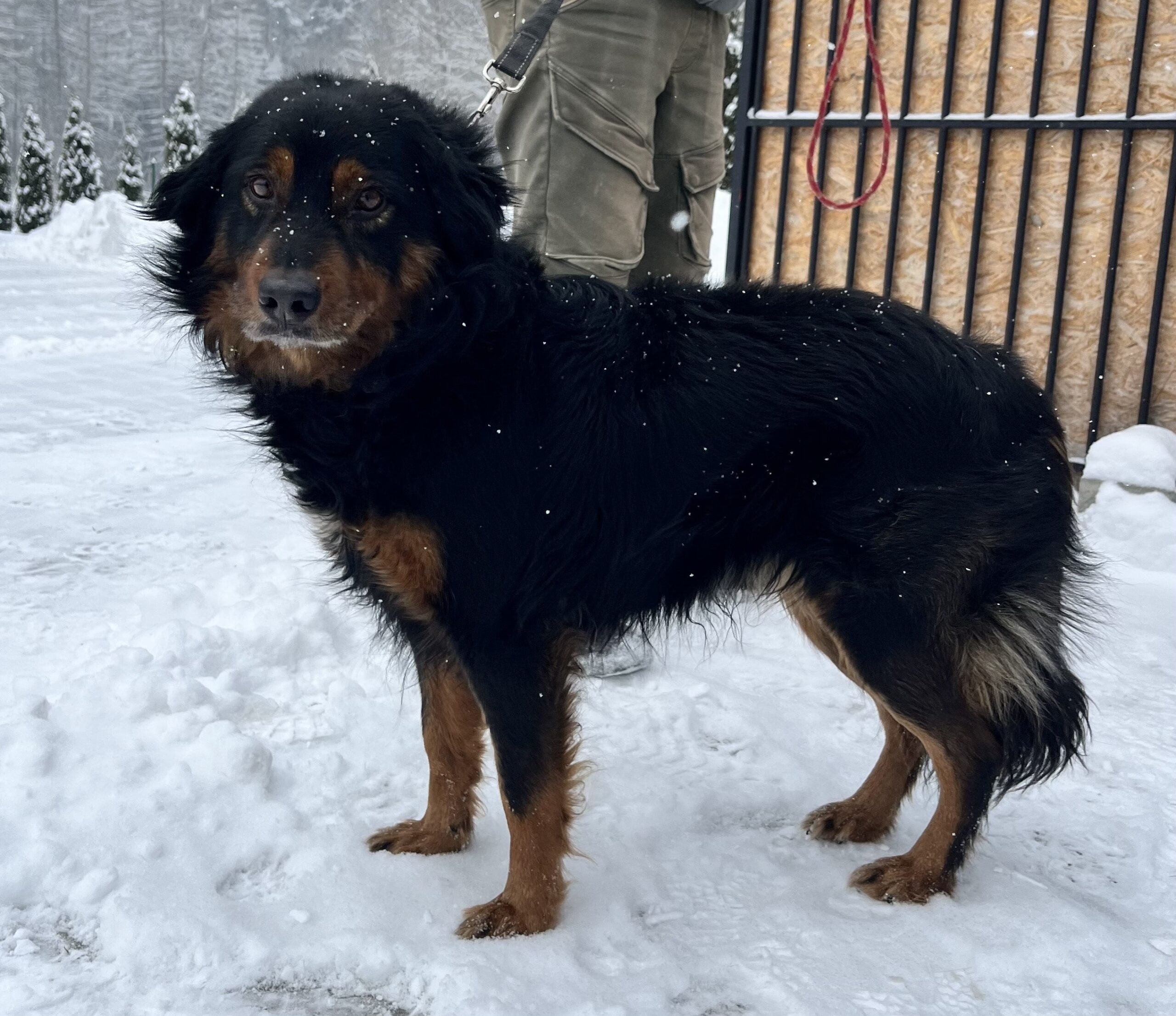 Pies jest niesamowicie przyjazny, spokojny, załatwia potrzeby tylko na spacerach, więc na pewno miał właściciela. W dniu zabezpieczenia nie posiadał obroży.