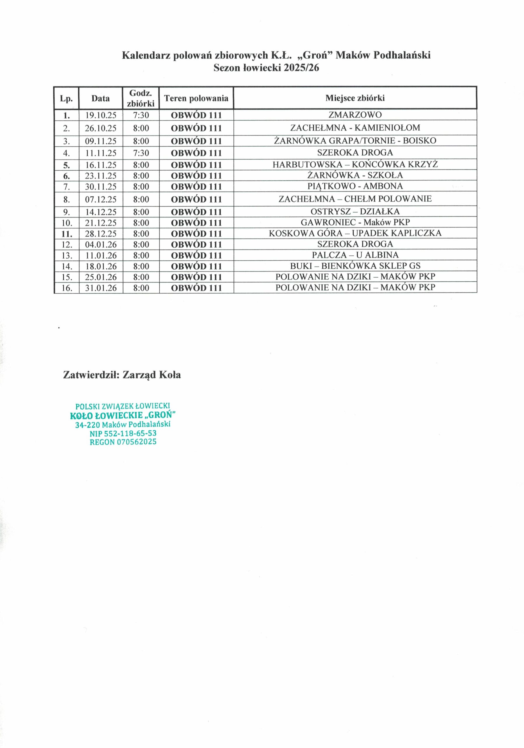 Plany polowań zbiorowych na sezon łowiecki 2025/2026