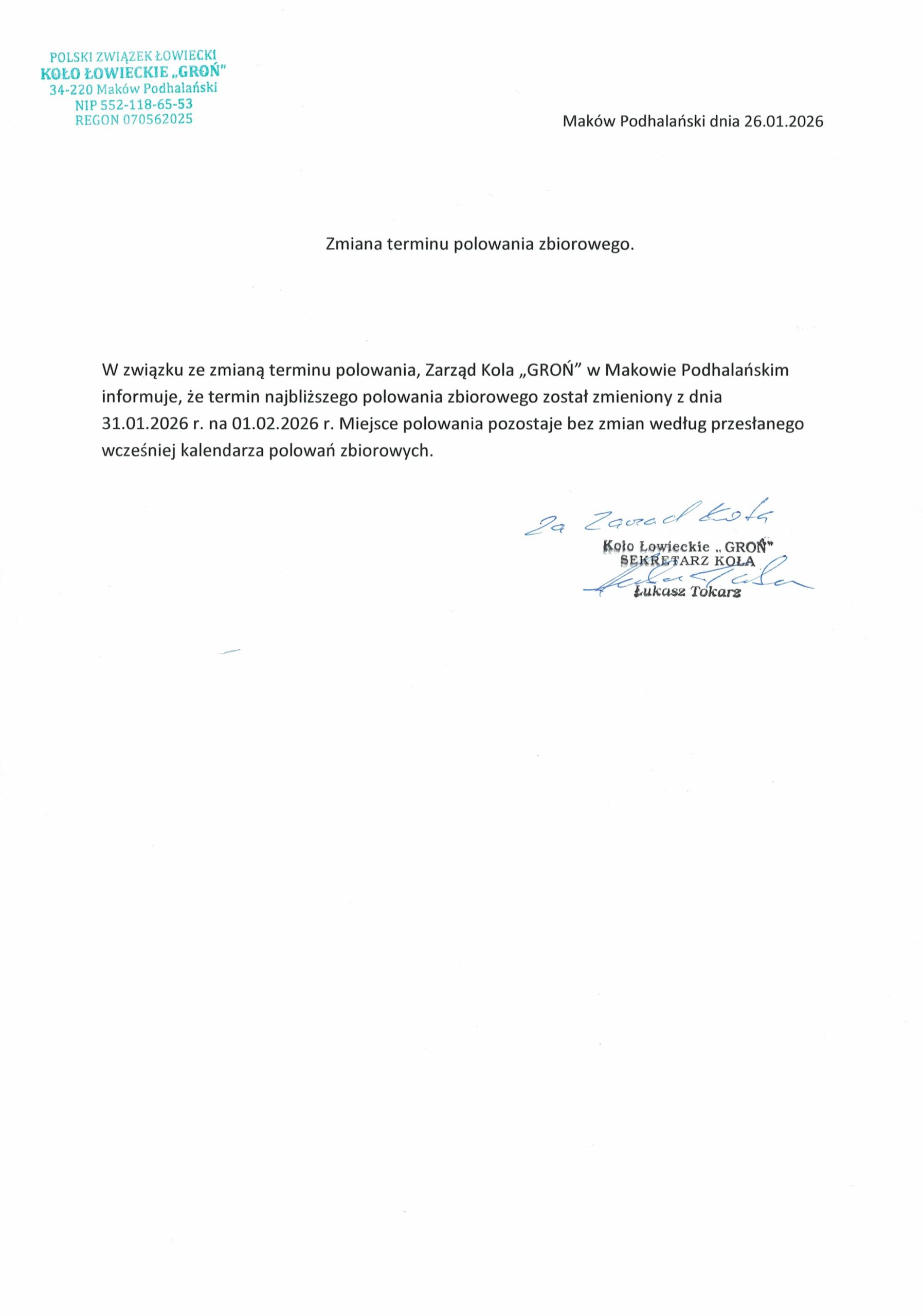 Plany polowań zostały zamieszczone poniżej w sekcji załączniki. W celu uzyskania informacji dostępnej prosimy o kontakt: 338767750.